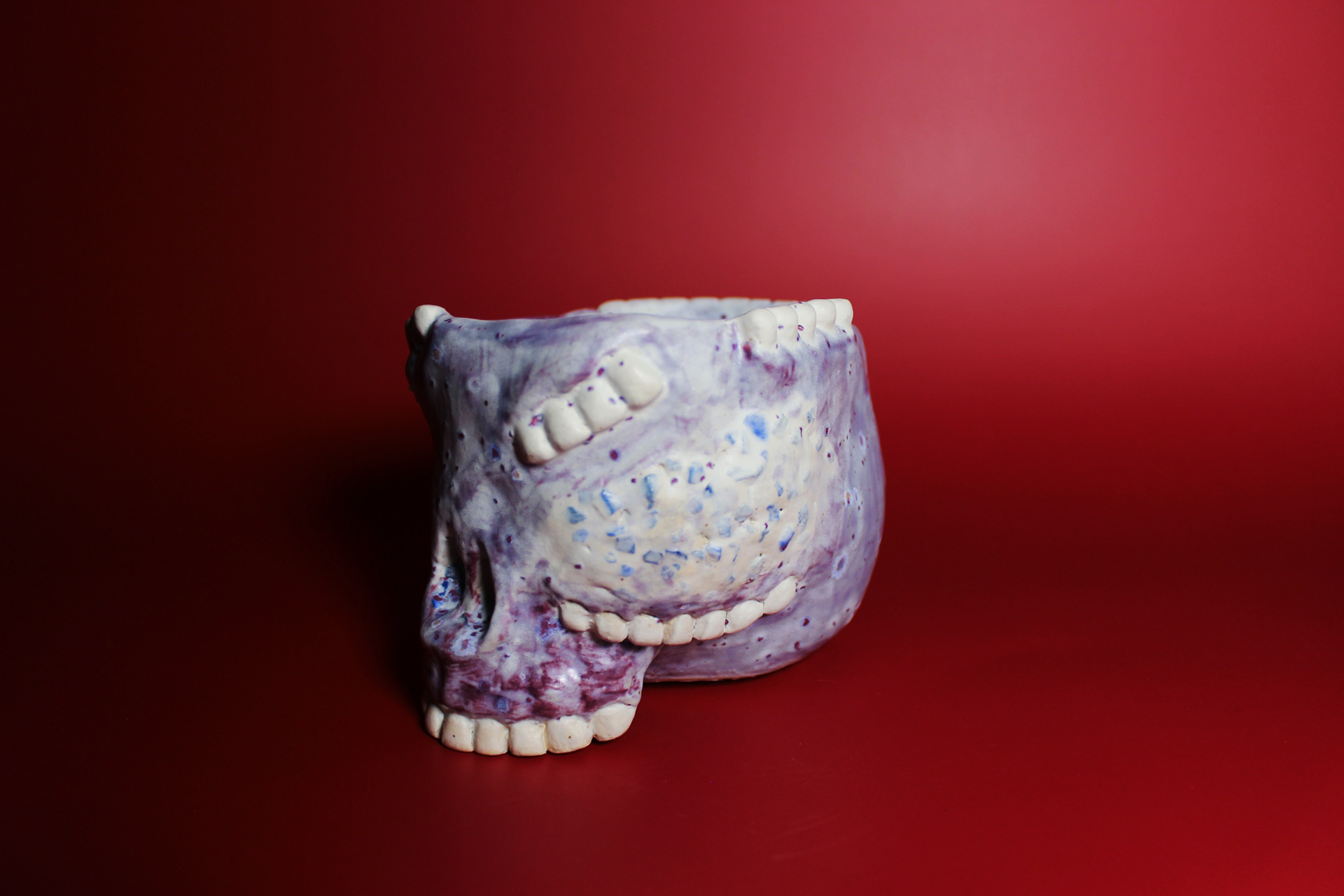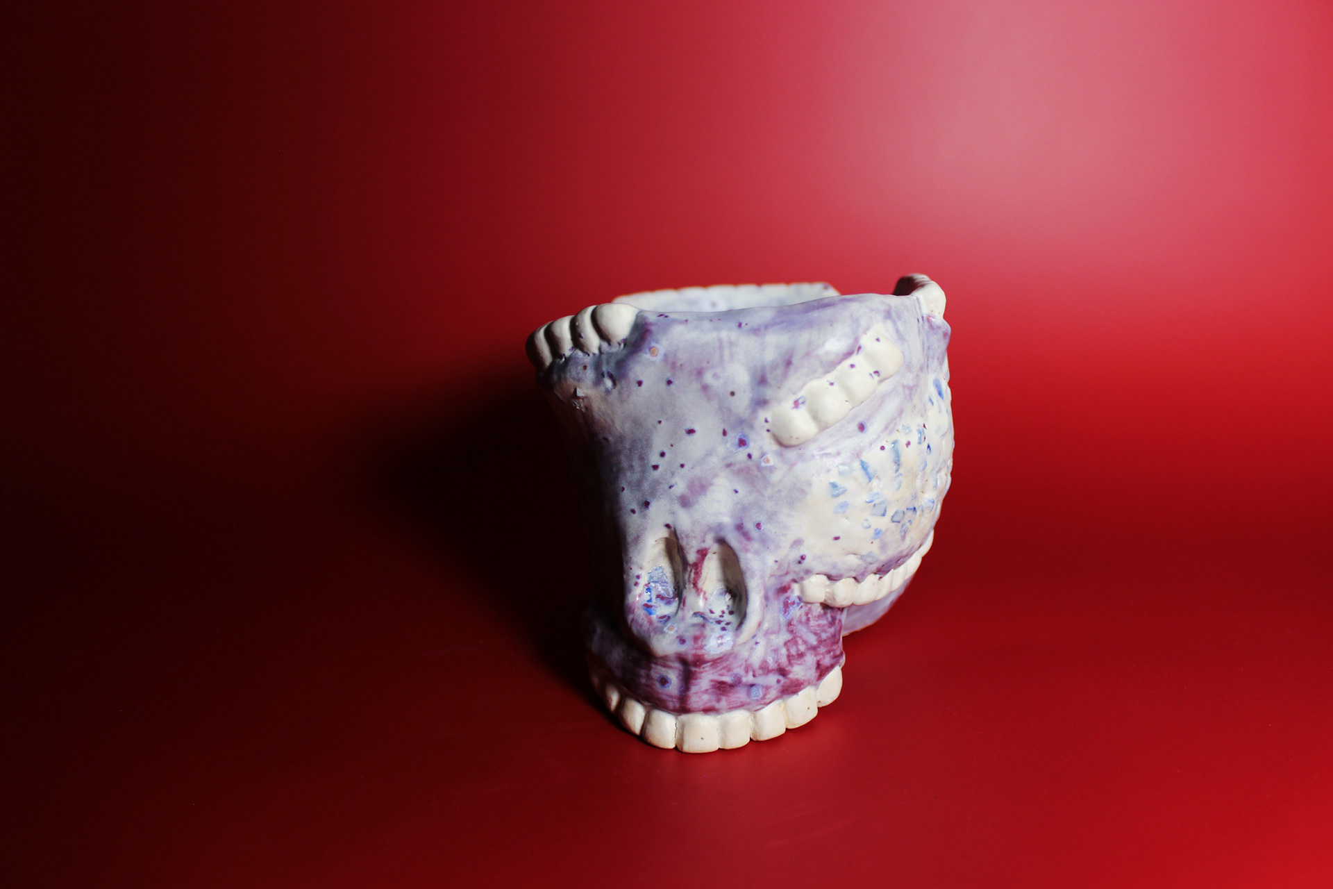 Tooth Fairy Cup, 2023. mid-range stoneware, colored grog cheek implants, Cone 6, Glazed